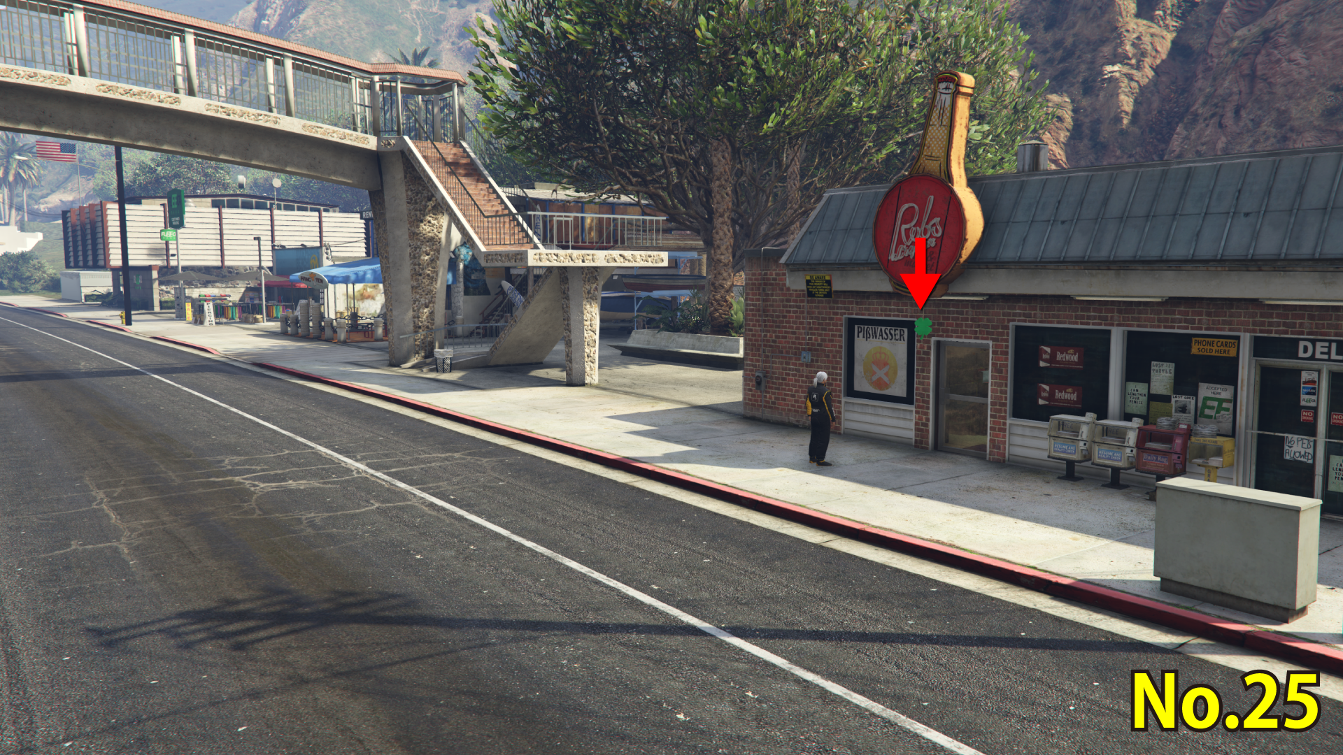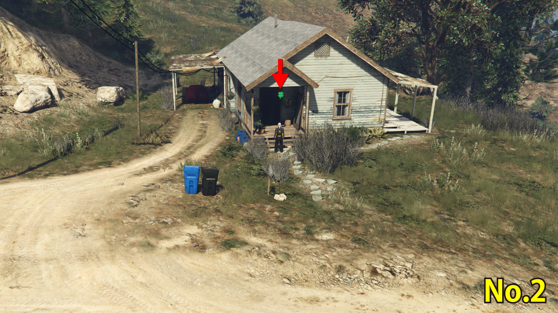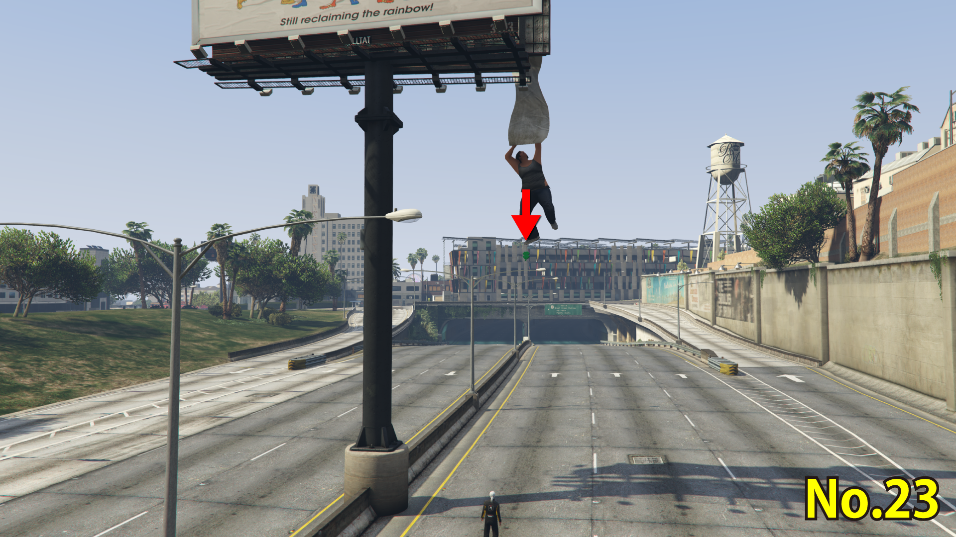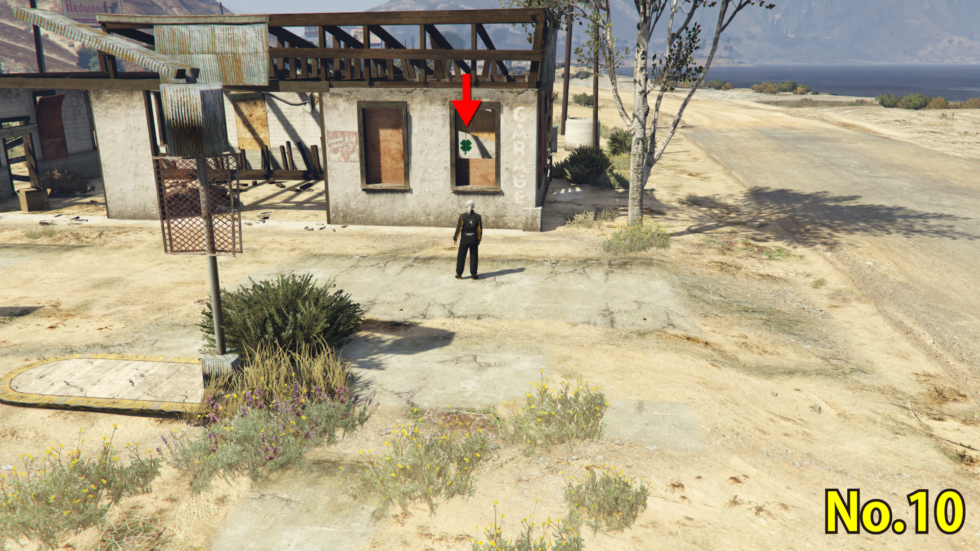 - 全部で25個のラッキークローバーがサンアンドレアス州各地に散らばっている。それを銃で割って収集していく。